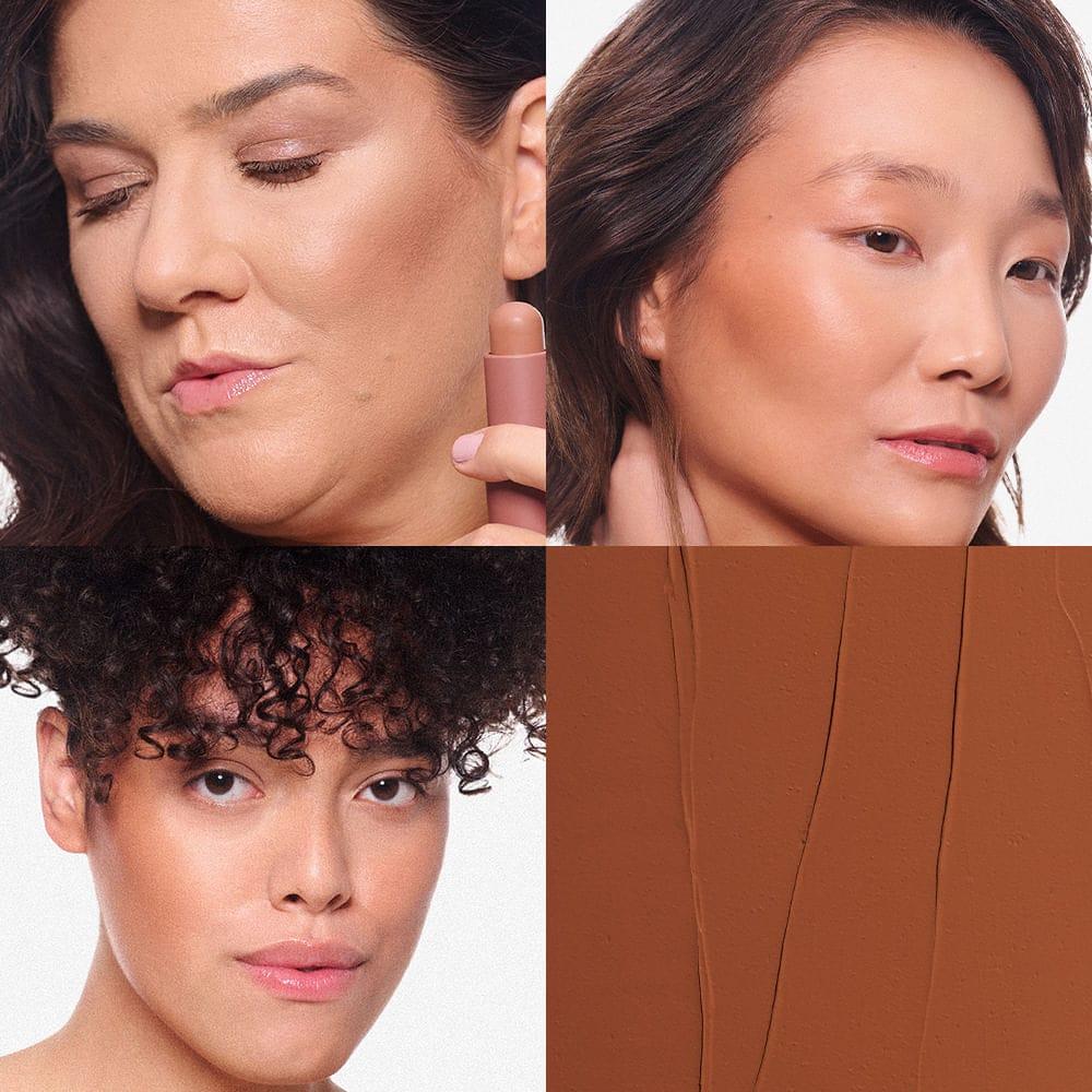 Contorno em bastão multiuso. Sua textura cream-to-powder (cremoso na aplicação e com aspecto de pó aveludado ao secar) desliza suavemente na pele e proporciona uma definição sutil, tornando a aplicação leve e fácil de construir.