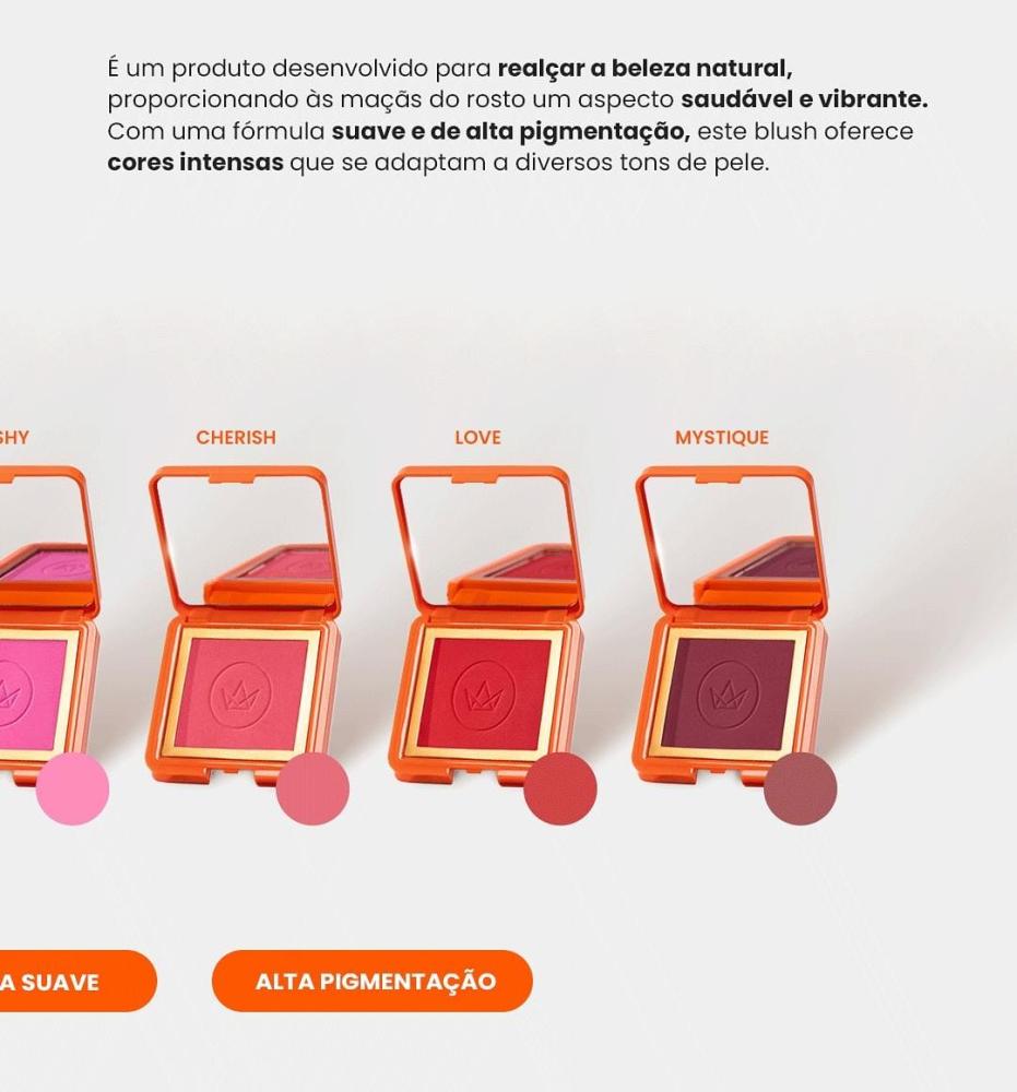Fórmula suave e fácil de espalhar, possui alta pigmentação e cores fantásticas. Adere suavemente à pele, proporcionando um acabamento natural que dura o dia todo.