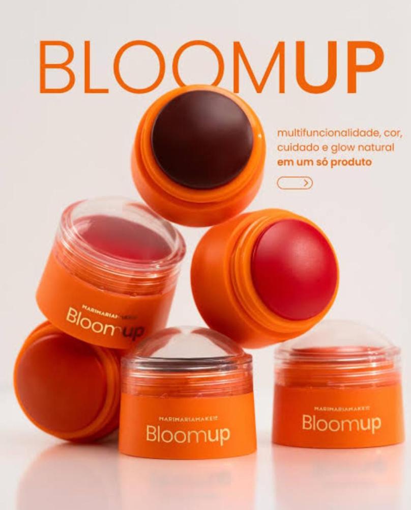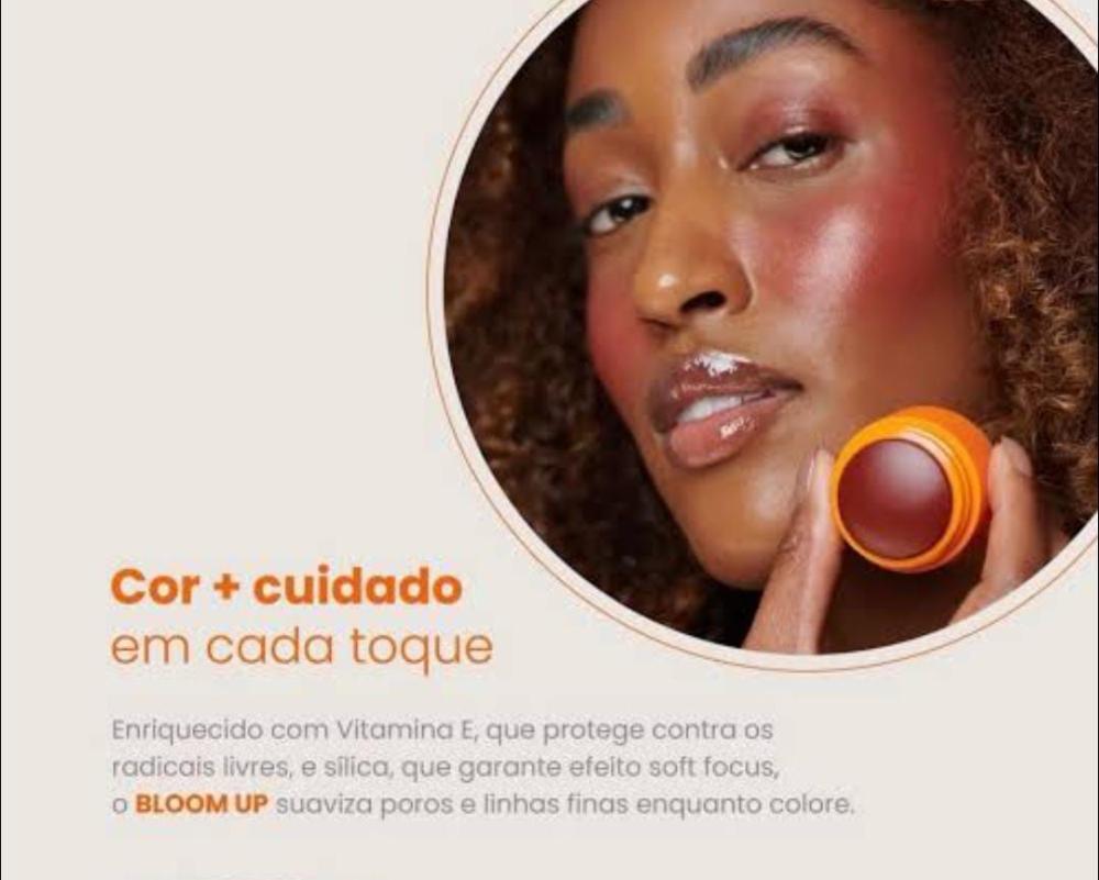 O Blush Multifuncional Mari Maria Makeup Bloom Up garante aplicação fácil e prática, enquanto sua pigmentação viva e uniforme entrega cor intensa desde a primeira aplicação. Sua fórmula é enriquecida com Vitamina E — poderosa aliada antioxidante que protege contra radicais livres — e Sílica, que oferece efeito soft focus, suavizando a aparência de poros e linhas finas. O produto ainda combina cor, cuidado e tecnologia em um só produto. Disponível em 3 cores exclusivas — Blossom, Merlot e Tangerine —, adapta-se a todos os tons de pele, trazendo sofisticação e leveza.
