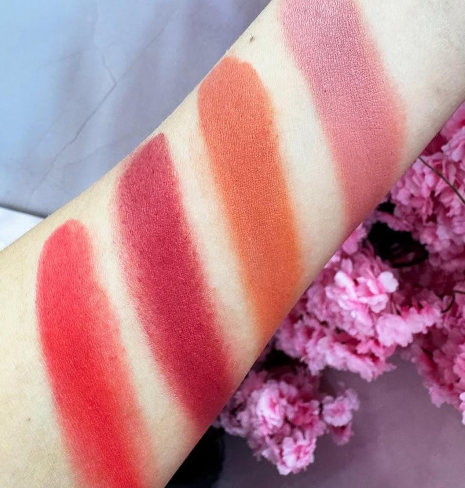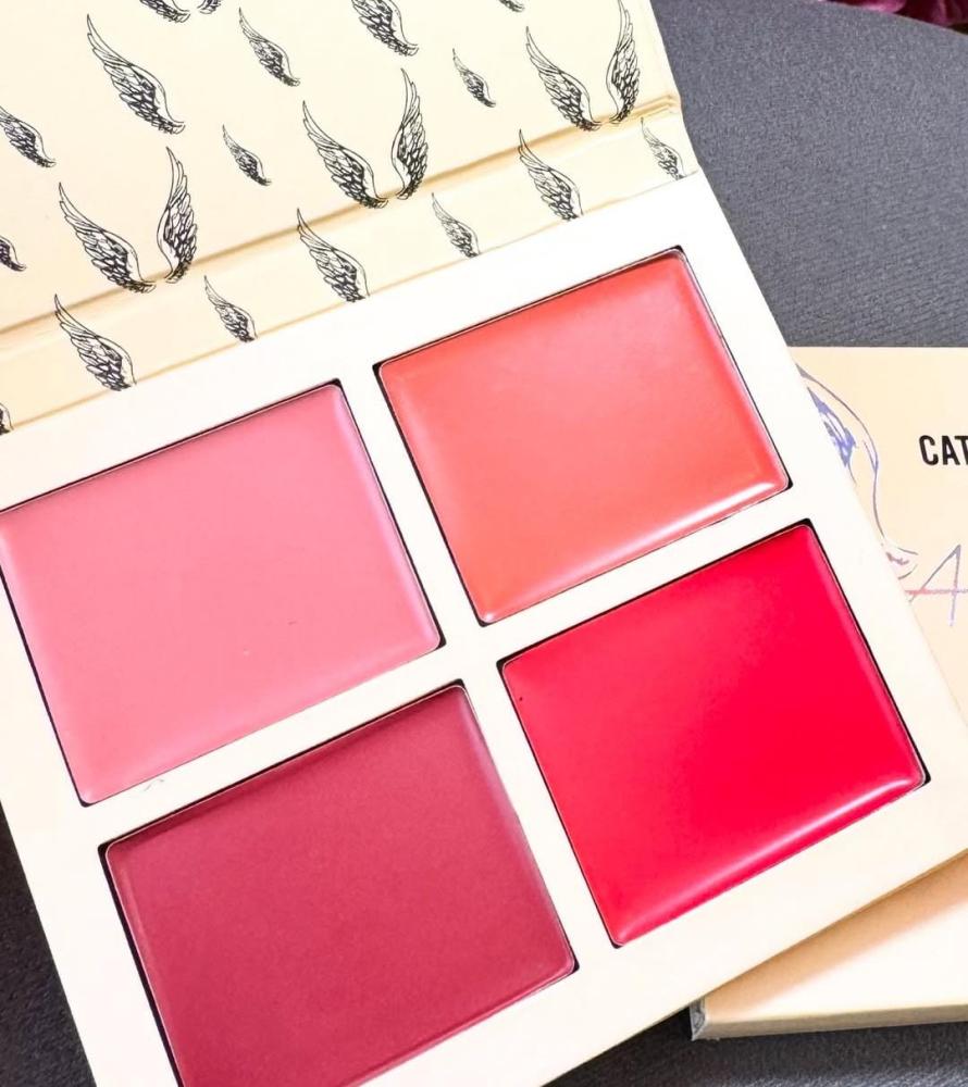 A Paleta Angel Blush Powder é composta por quatro tons de blushes em pó, sendo três opacos e um cintilante.