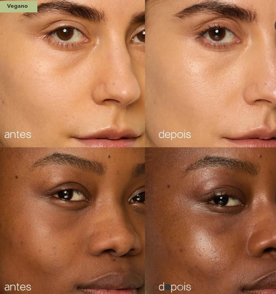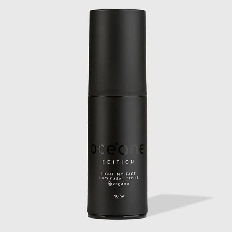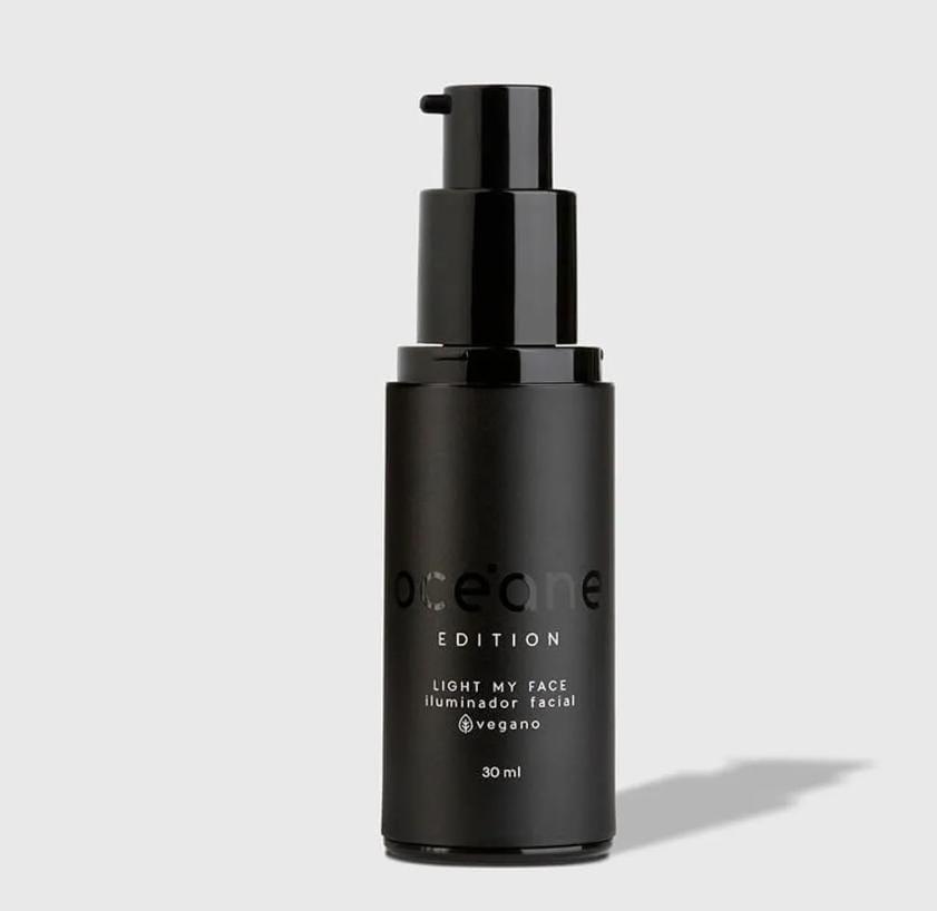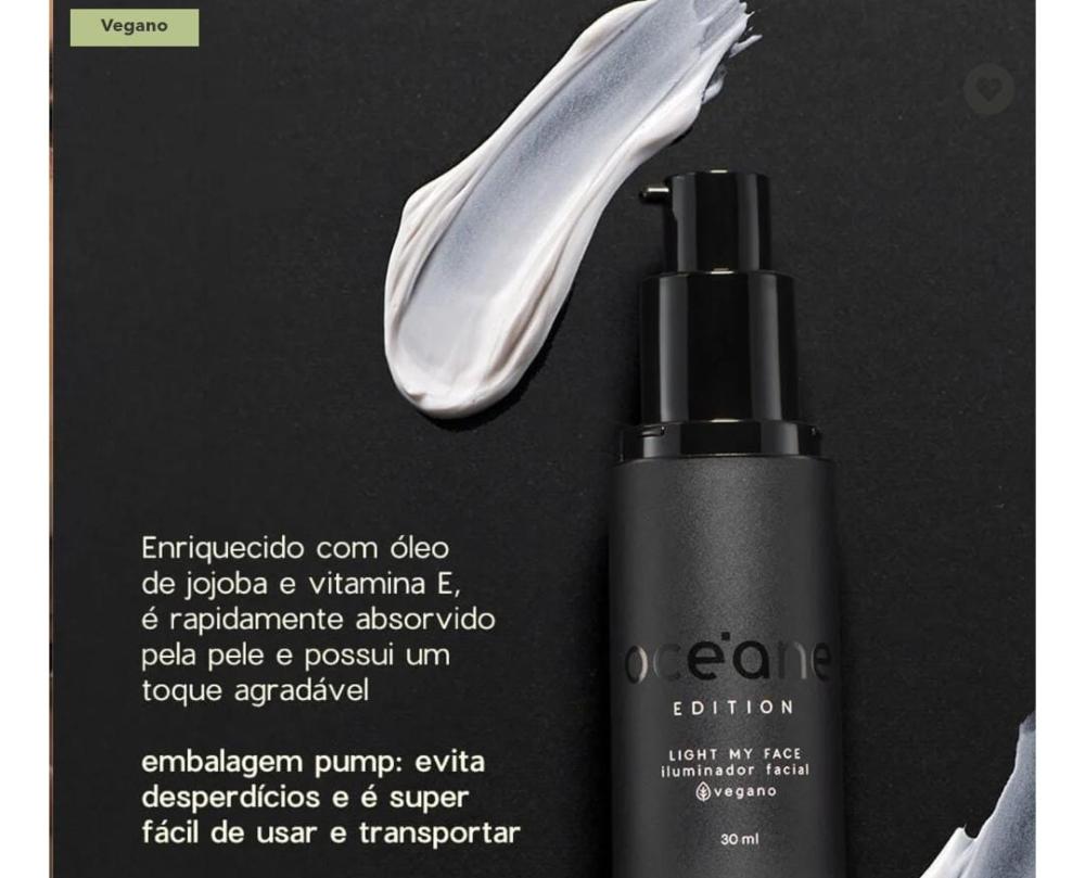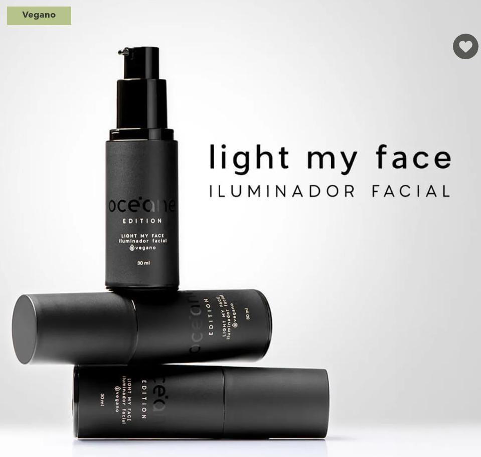 Light My Face é um iluminador líquido translúcido e vegano, com brilho delicado e acabamento glass skin. Incolor, funciona em todos os tons de pele e possui fórmula confortável com óleo de jojoba e vitamina E.