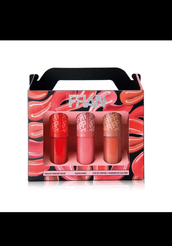 Kit com gloss labial. Fran by Franciny Ehlke Glosslicious indispensável na nécessaire de quem busca lábios brilhantes, hidratados e com um toque de glamour.