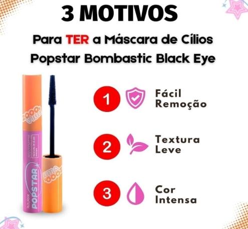Ruby Rose Máscara de Cílios Bombastic Popstar, Volume e Definição Intensa 8ml